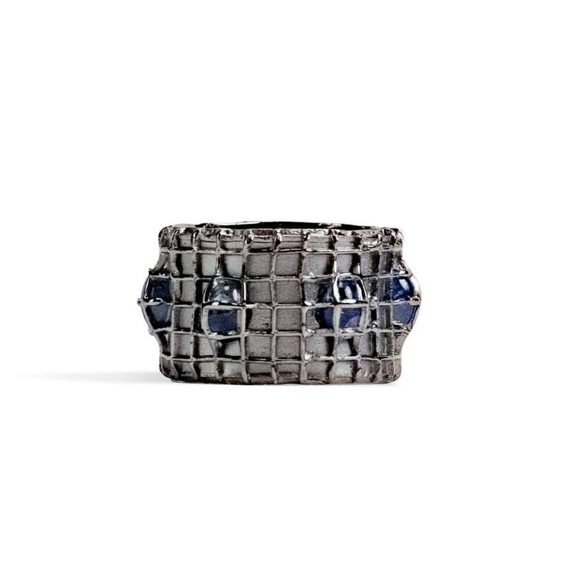 Locked up in the jail of the mundane, sometimes we stop and look outside the cage in awe - just like these blue sapphire eyes of the signature ring - and the great outside looks back at us.This piece is individually handcrafted and might look slightly diff