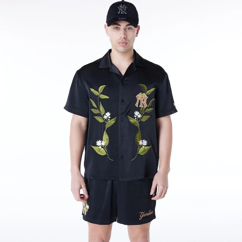 Floral Revere New York Yankees Short Sleeve ShirtNew York Yankees logo on left chestFloral embroidery down right frontFloral embroidery down left frontNew Era Flag embroidered on left sleeveButton closure frontCollarModel is 6ft 2in tall and wears a size M
