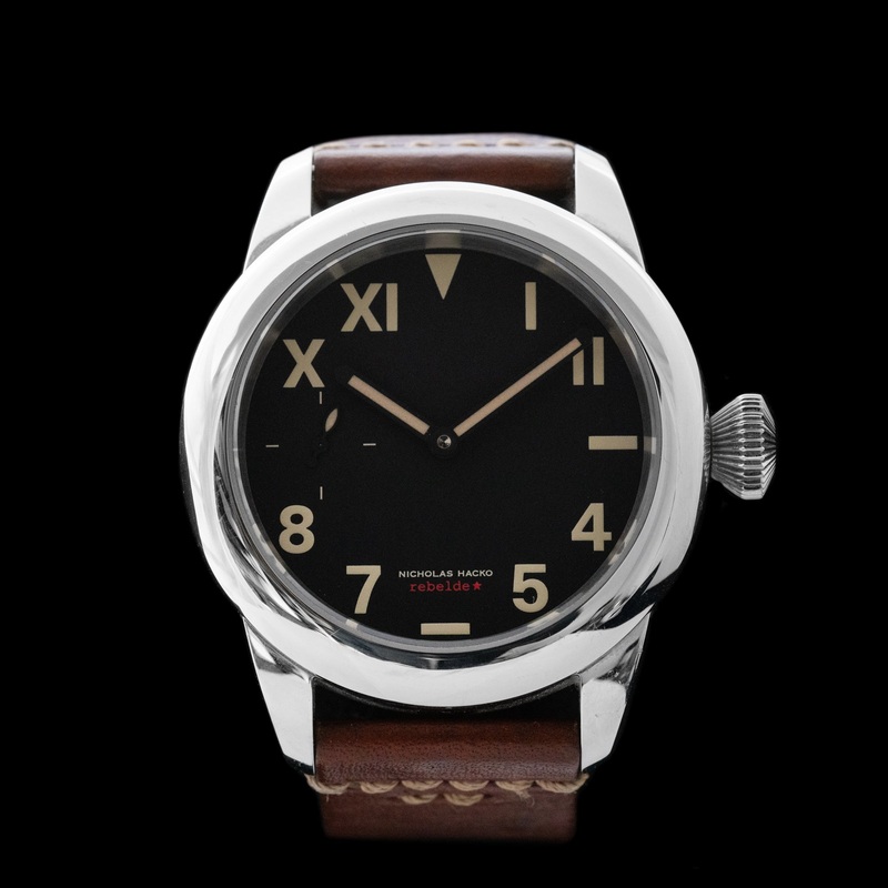 WHAT WE LOVE:One of only 75 pieces, this model hasn't made it very far from home. Assembled by Nicholas Hacko and his team in Sydney, these Rebelde models served as the foundation for the Australian in-house watchmaking that Nick and his team have continue
