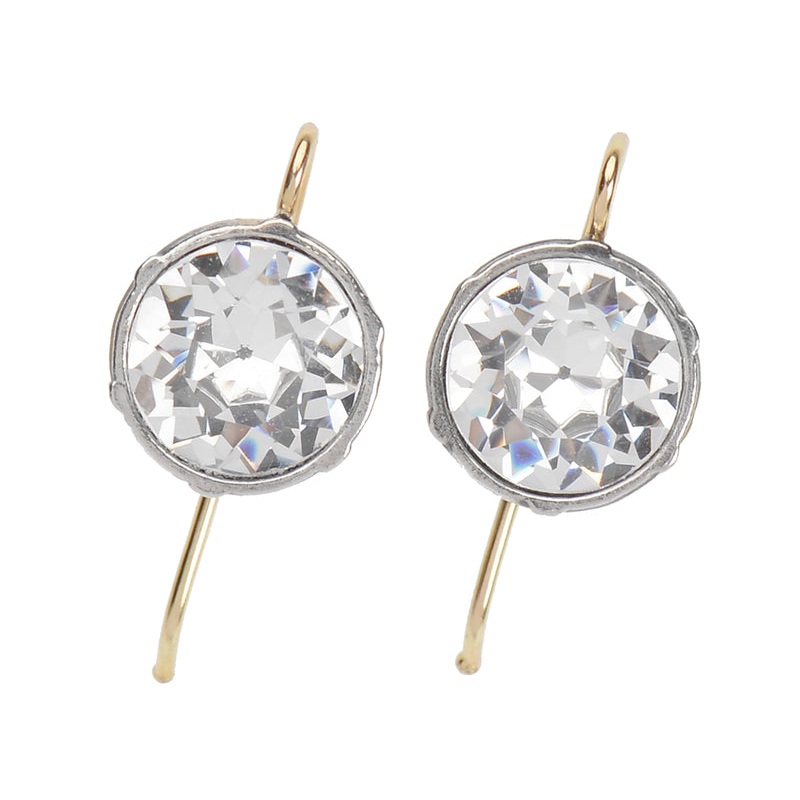 Sexy and refined, these clear and glittering paste earrings are created with you in mind. Just enough, never too much, their scale is that of a 2.5 carat diamond each (10 mm in diameter).