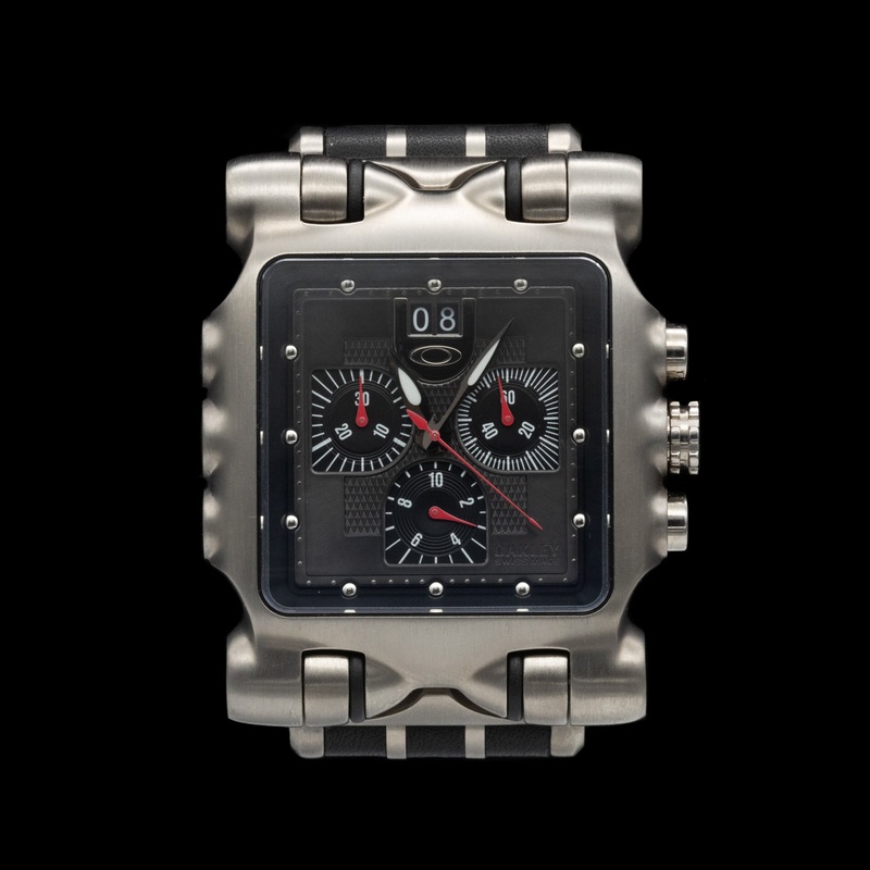 WHAT WE LOVE:A rather unconventional design from Oakley, this very lightweight Time Tank features an easy-to-use Swiss chronograph movement with a highly legible big date function. Nearly in its second decade of life, it is in great condition, even with an