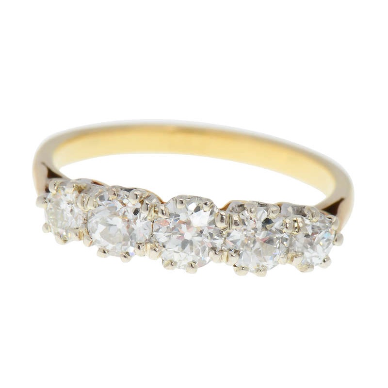 Brilliant as the day is long, these antique conflict free old European diamond represent over a carat spread among five diamonds.