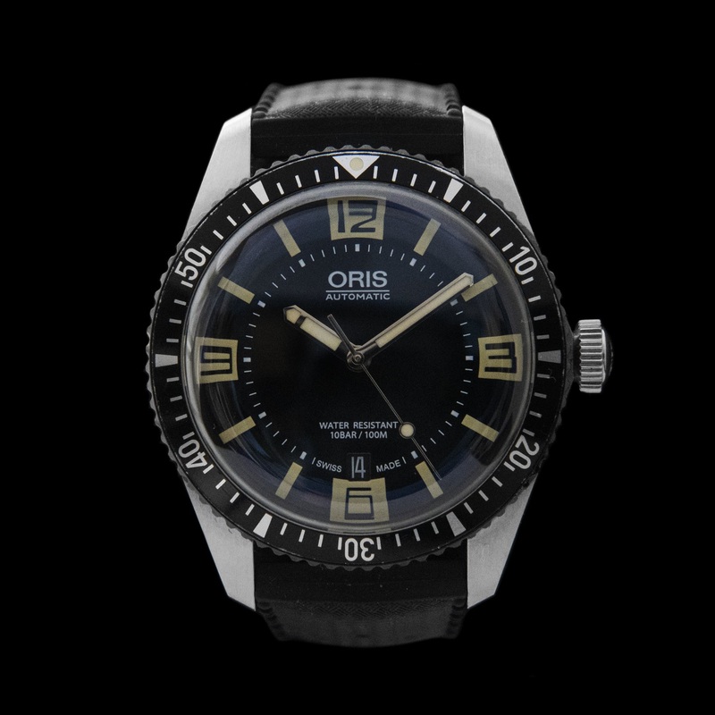 WHAT WE LOVE: A very cool vintage-inspired Skin Diver, fully factory overhauled in 2019 this one is ready to go.Brand: Oris Reference: 01 733 7707 4064-07 4 20 18Model: 2016 Divers Sixty-FiveMovement: Oris 733 AutomaticCase Material: Stainless SteelCase di