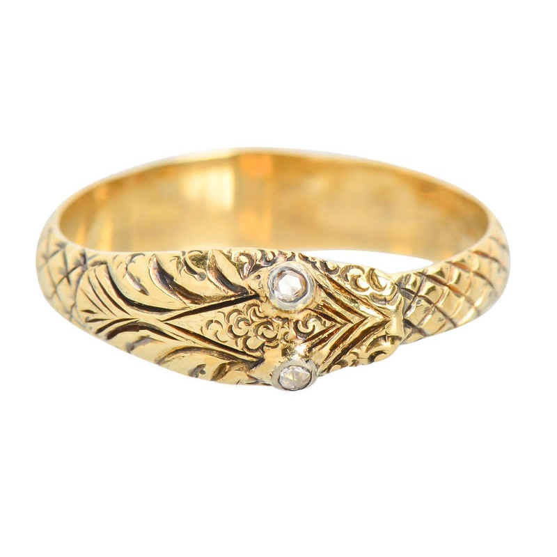 Imitating the scales of the snake, as well as its expressive head, mouth, and tiny eyes which are set with rose cut diamonds, it possesses a beautiful feel and visually captivating look. Rare and mystical.