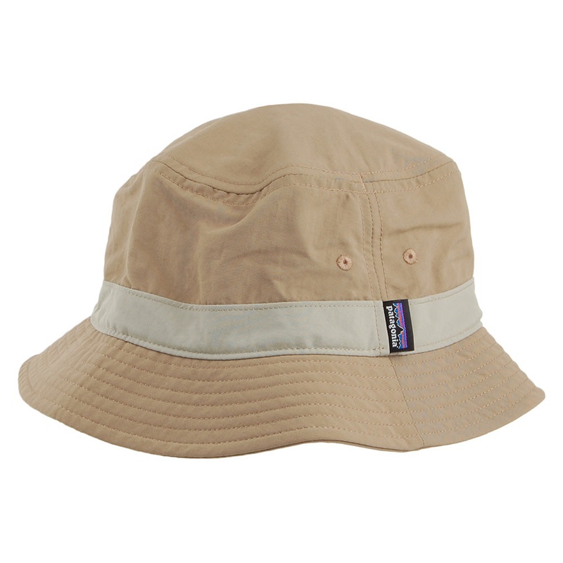The Patagonia Wavefarer bucket hat in tan is an eye catching hat for the summer. The Wavefarer is a versatile sun hat for any occasion on land or sea. It rolls up for easy packing and has a quick-drying, lightweight stretch-woven recycled nylon fabric with