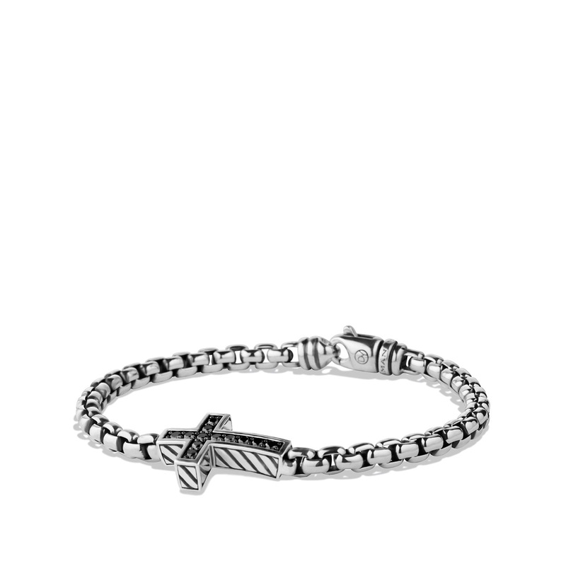 Sterling silver Pav black diamonds, .55 total carat weight, Cross, 27 x 16mm Bracelet, 5mm wide Lobster clasp- Ref: B15466MSSABDM