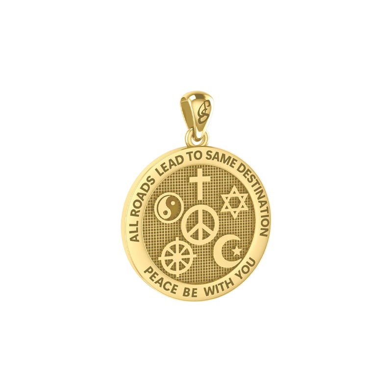 This exquisite pendant features a stunning combination of symbols representing peace and faith, intricately crafted from solid yellow gold. Wear this piece as a reminder of inner peace and faith, or give it as a heartfelt gift to a loved one. Made with exp