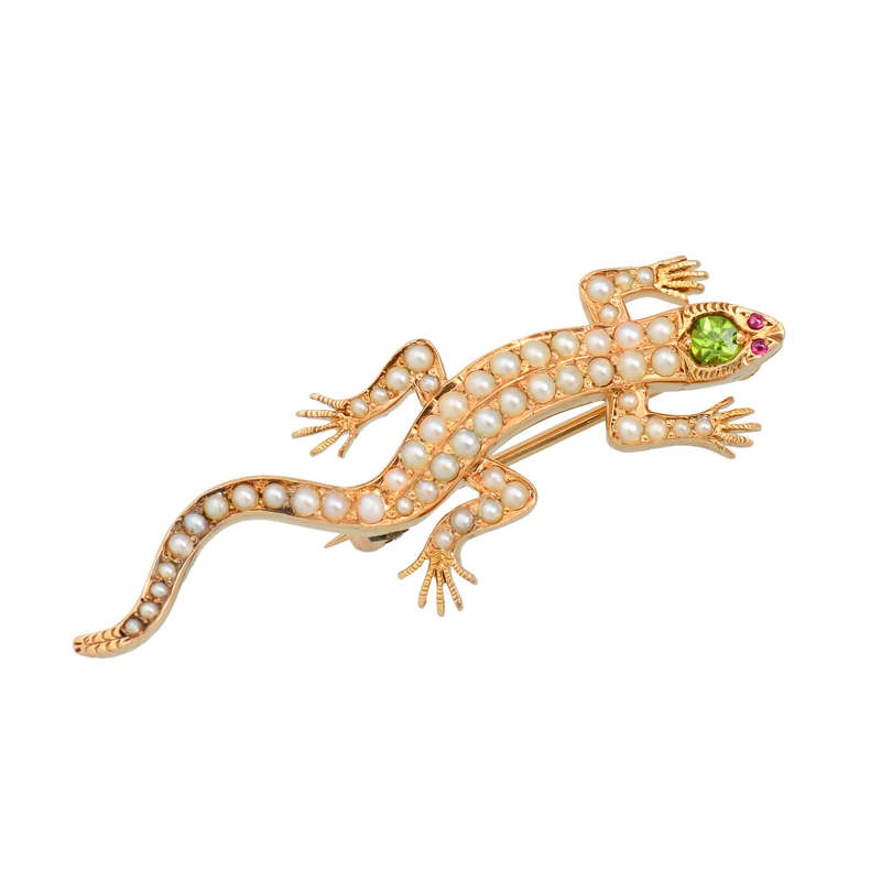 No detail is left to chance…note that on one side of the lizard, the pearls are just a hint grayer than the rest, adding a touch of three-dimensionality to the brooch.