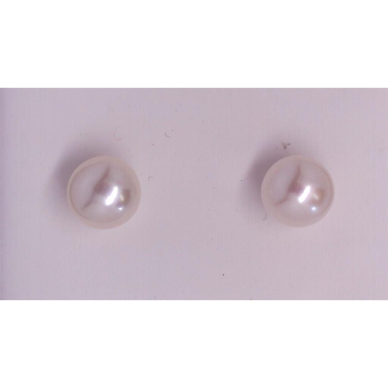 LADY’S WHITE 14 KARAT PEARL STUD EARRINGS WITH 2=8.00X8.50MM CULTURED PEARLS