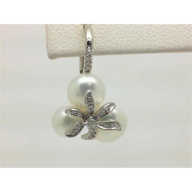 LADY’S YELLOW 14 KARAT DROP DISC EARRINGS WITH 0.04TW ROUND DIAMONDS AND OTH MOTHER OF PEARLS