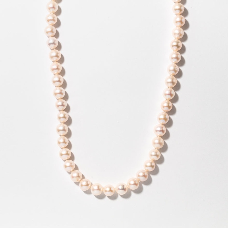 Bringing a touch of elegance to anyoutfit, this pearl necklace is the perfect addition to your jewellery collection. Finely crafted in 14K yellow gold, it showcases an array of 8-9mm cultured pearls. This necklace can beworn as a single strand or layered for a more dramatic effect.Indulge yourself or surprise a loved one with this exquisite Pearl Strand Necklace. This lovely necklace measures 30″ in length.