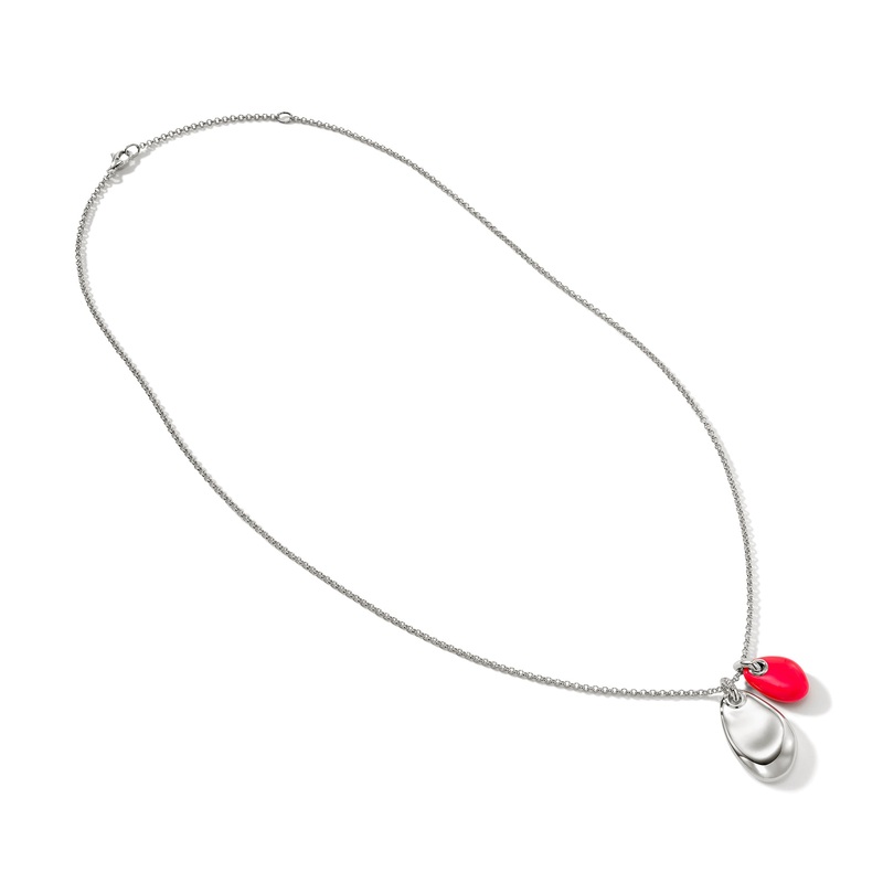 Inspired by the spontaneity, serendipity and unexpected beauty of forms found on the beach.Style No.: NBP9011052PKDIX22-24Metal: Sterling SilverStone: White Diamond with Neon Pink EnamelCarat Weight: 0.02ctwGauge: 2MMPendant Dimensions: 30.5MM x 17.5MMSett
