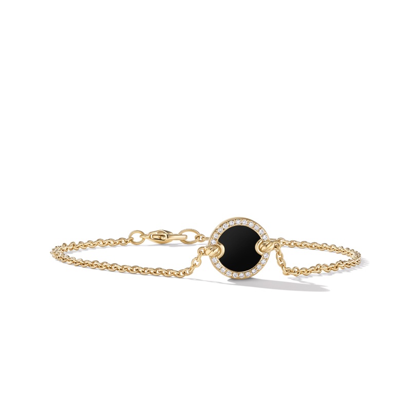 Petite DY Elements Center Station Chain Bracelet in 18K Yellow Gold with Black Onyx and Pave Diamonds