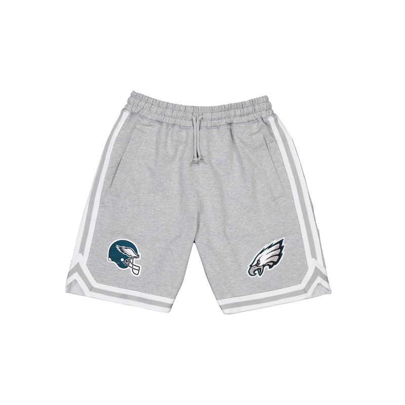 The Philadelphia Eagles Gray Logo Select Shorts features a chenille applique Eagles logo at the left leg with an alternate team logo patch embroidered at the right leg.