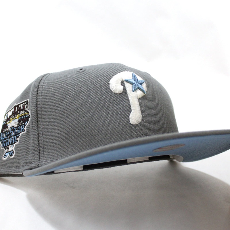 Philadelphia Phillies 2006 All Star Game 59Fifty New Era Fitted Hats in Storm Gray & SkyBlue Under Brim.