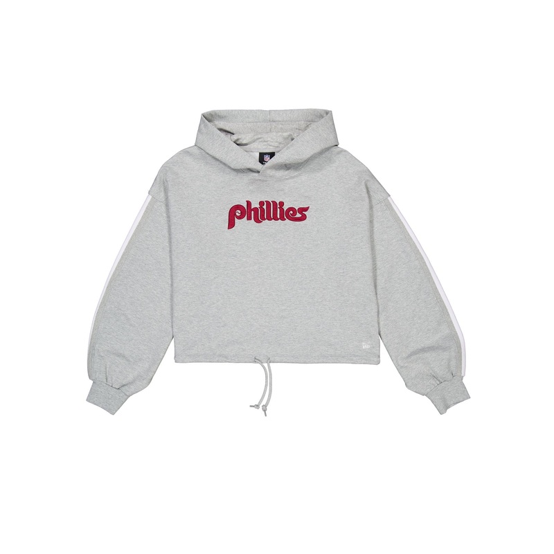 The Philadelphia Phillies Gray Logo Select Women’s Hoodie features an embroidered Phillies wordmark at the front panels with a drawstring closure at the hem.