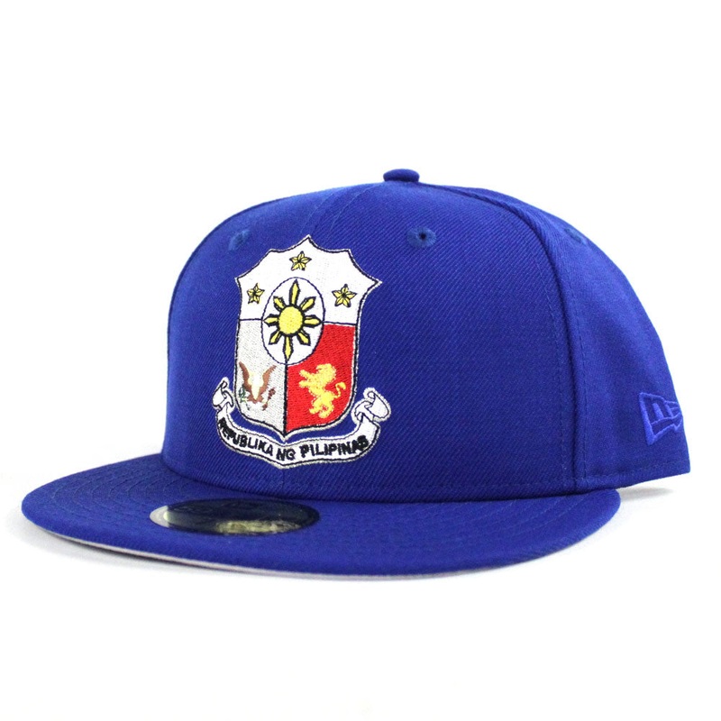 ECapCity.com has another Philippine Crest New Era 59Fifty Fitted Hat. The Filipino New Era Fitted Cap is Blue base with the Crest in White, Royal Blue, Red and Yellow. Philippines New Era custom 59Fifty fitted Cap in all Blue with a Filipino Crest. In the