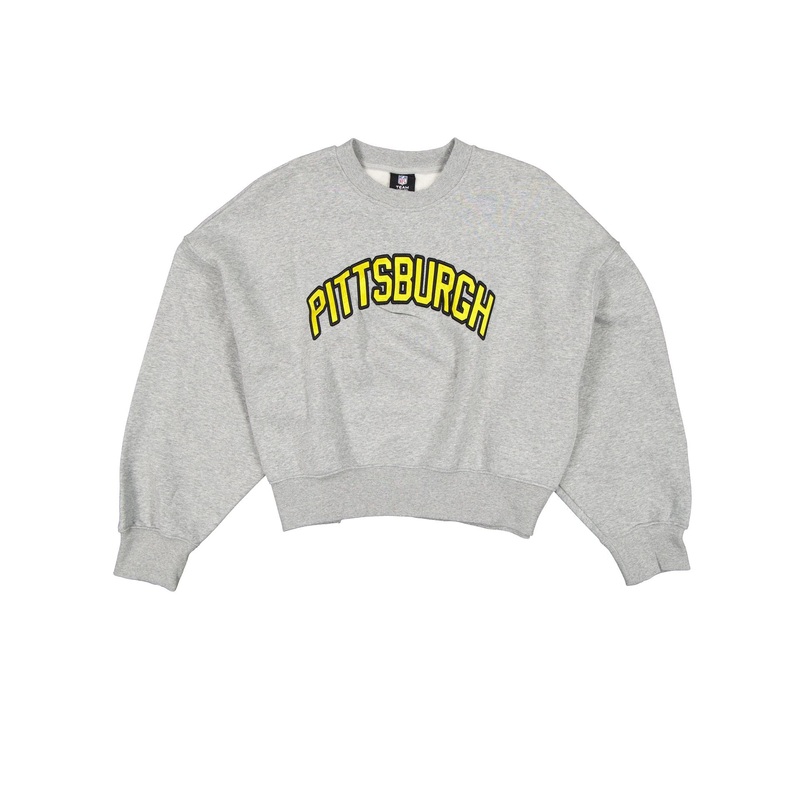 The Pittsburgh Steelers Sport Classics Women's Crewneck features an embroidered Steelers satin appliqu wordmark at the front with an embroidered team logo at the left sleeve and a boxy fit.Fabric: 80% Cotton, 20% Polyester