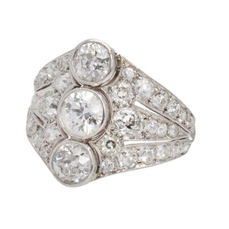 This Art Deco diamond platinum dinner or cocktail ring comes in a ravishing total of 5.36 carats of natural diamonds. Yes, over 5 carats.