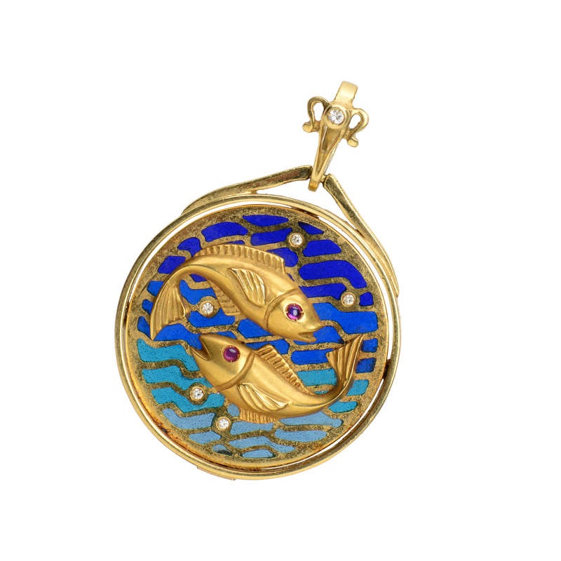 Signed Tinelli, this Italian Zodiac pendant embodies the spirit of the watery world of Pisces.