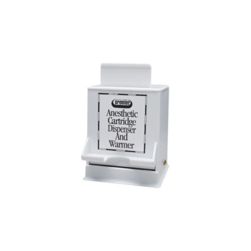 Dispenses Anesthetic Cartridges at Body Temperature!Warming unit heats up to 60 cartridges to approximate body temperature to avoid anesthetic trauma from thermal shock. One cartridge is dispensed by pressing top panel. Remaining cartridges stay in case, f