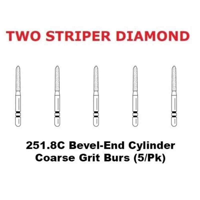 Premier Dental TWO STRIPER Diamond 251.8C Bevel-End Cylinder Coarse Burs 5 PkTwo Striper Diamonds Burs Chamfer Prep. Two Striper stays sharp longer and delivers faster, cooler cutting than electroplated brands. Which means fewer burs, less chair time and h