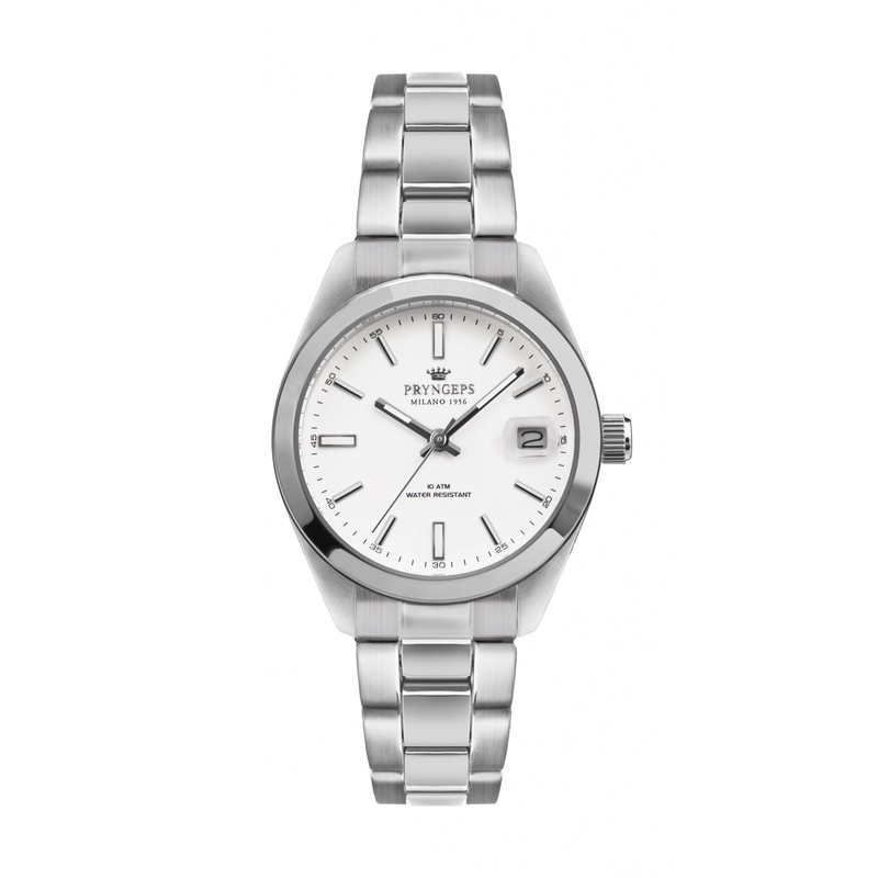 CASSAAcciaio diametro 33 mm, water resistant 10 ATM, corona serrata a vite personalizzata, crystal coated sapphire, fondello acciaio serrato a vite, lunetta in acciaio, Spessore della cassa mm 9,85QUADRANTECipria, verde, nero, blu o bianco, indici in rilievo, logo in rilievo, datario al 3, solo tempoBRACCIALEAcciaio solido, ansa 16 mm, chiusura butterfly con fermaglio di sicurezzaMOVIMENTOMiyota