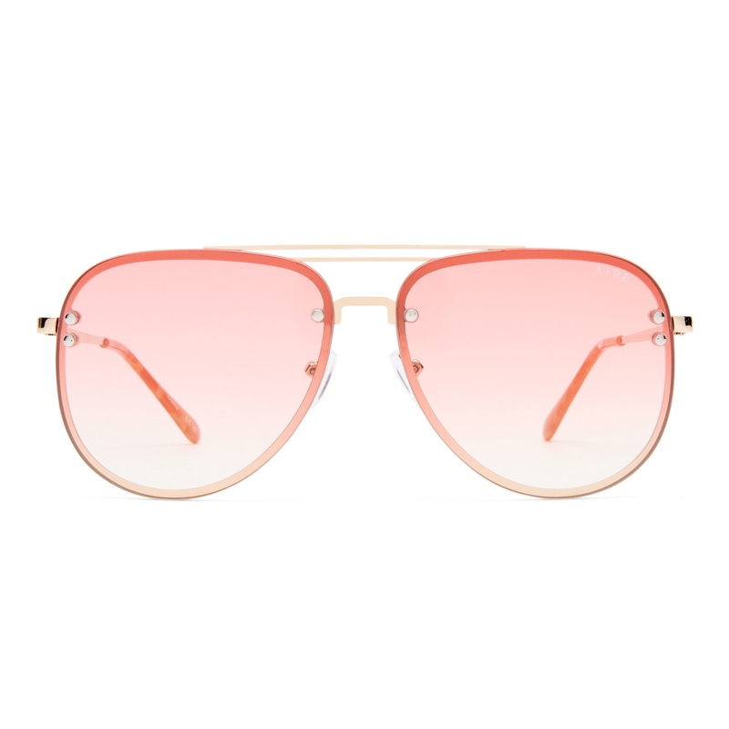Finished in a gold frame with burgundy gradient lenses. A lightweight, durable and impact resistant frame. Fitted with shatterproof and scratch resistant polycarbonate lenses. Aire soft pouch and cleaning cloth