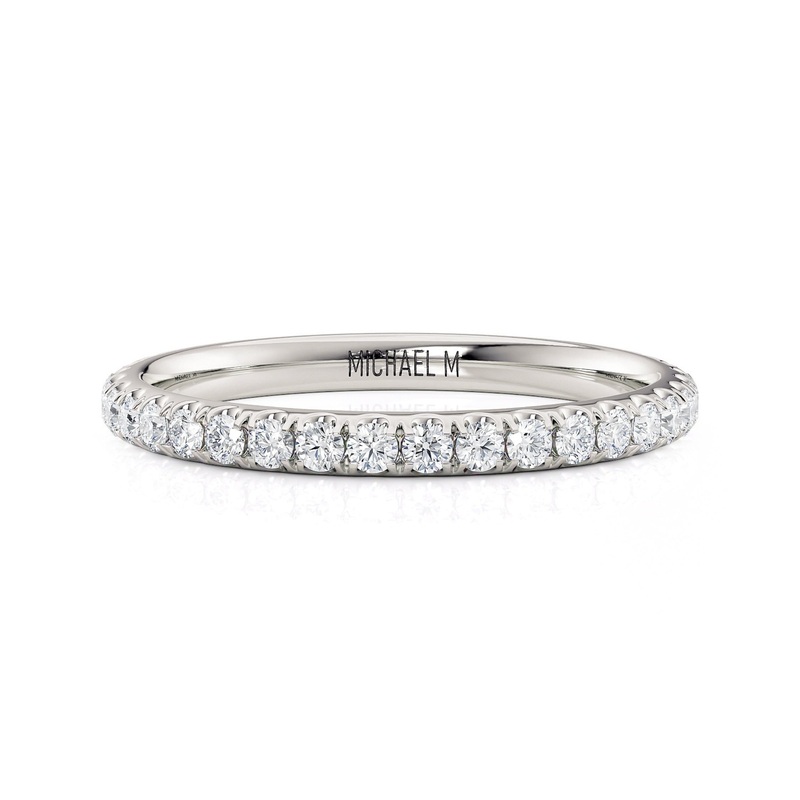 Product DetailsIts distinctive, clean design and expertly crafted 0.40cts of u-set pave make MICHAEL M wedding band R800B a perfect match for CROWN R800-3.All engagement rings are available in your preferred choice of 18K Rose Gold, White Gold, Yellow Gold