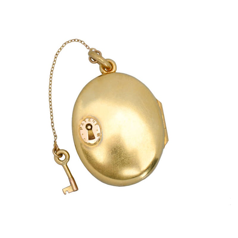 An exceptionally rare example of a Victorian locket features a key that really works to unlock and lock it closed.