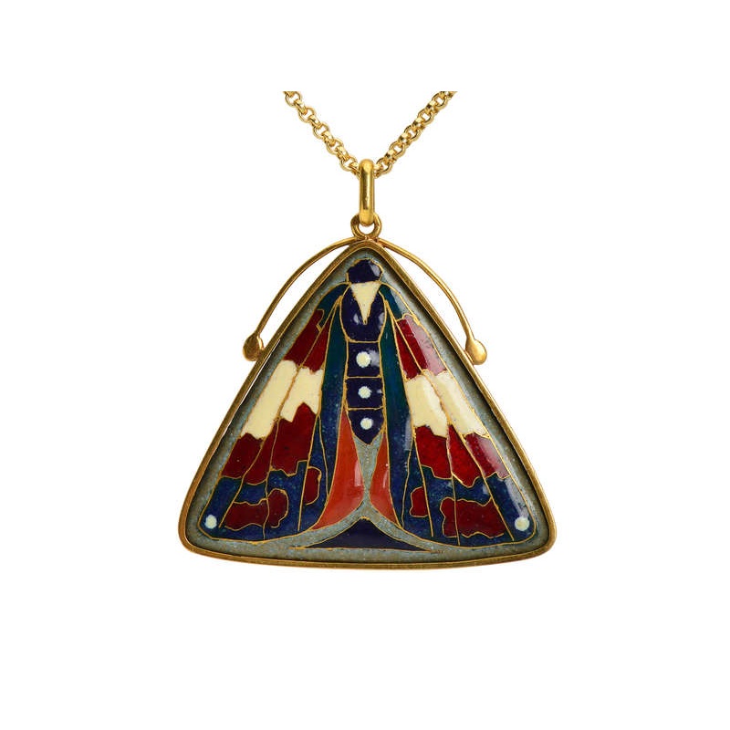 An outstanding example from the female artist, Jeanne Soubourou, this Limoges enamel moth pendant was certainly ahead of its time.