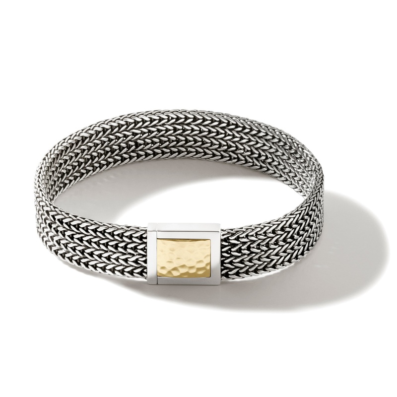 Classic Chain Hammered 18K Gold & Silver 12mm Chain Bracelet with Pusher Clasp, Size UM BGStyle# BUZ900918XUM