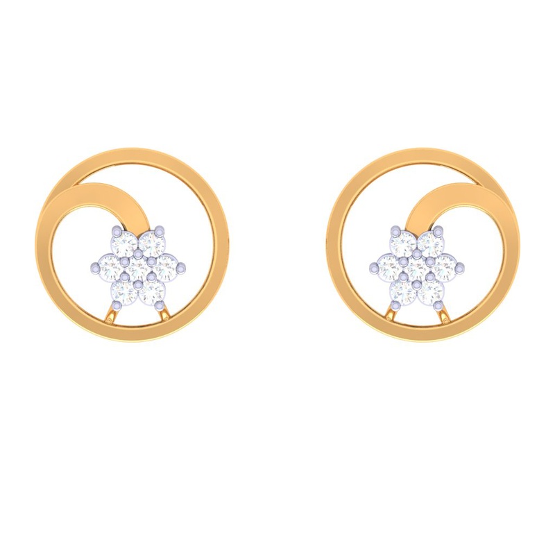 The designer diamond earrings with 1.2cm*1.2cm*1.2cm dimension weights 1.3gms and has 0.18CT diamond weight. The 18K earring comes with BIS hallmark and SGL/EGL/PCC Certification for gold and diamond purity.