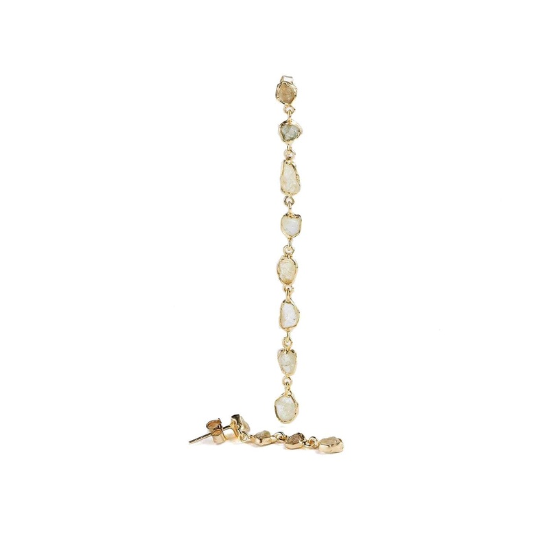 Dreamy chrysoberyl color palette for those lost in their thoughts: raw gemstones shading lights so that you can always find your way back.Metal: 925 SilverStones: Chrysoberyl RoughPlating: 18K GoldWidth 5 mmLength 102/50 mmWeight 9.68 g