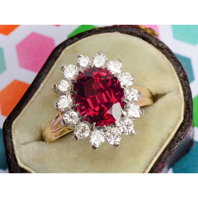 Did you catch a glimpse of that magnificent ring on the hand of that chic woman over in the corner? It must be one of those fabulous rhodolite garnets. I can see the blazing color from here.”