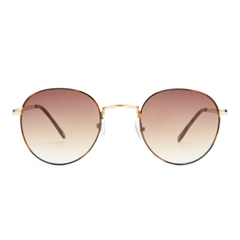 Finished in a gold and tort frame with brown gradient lenses.