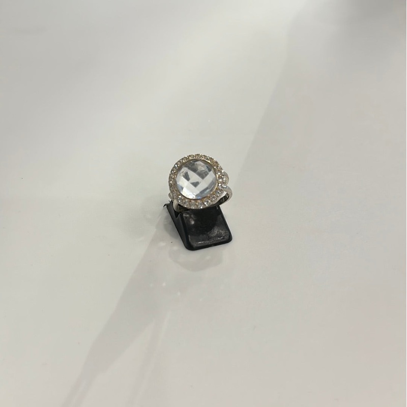 Sterling silver Rock crystal ring set with a halo Swarovski crystals.