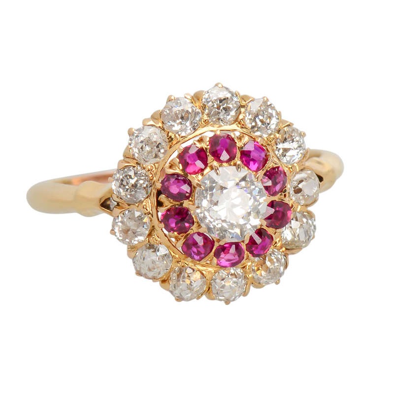 Rondelle – Victorian Ruby Diamond Halo Ring