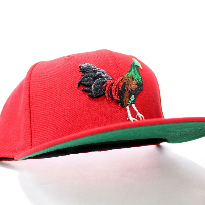 ROOSTER (Gallo) New Era 59Fifty Fitted Hat in Red & Green Under Brim.