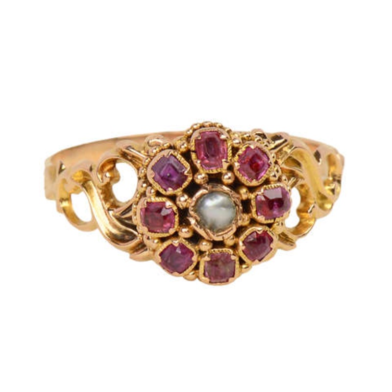 Step into the mid 1800s with a ruby pearl ring of your own.