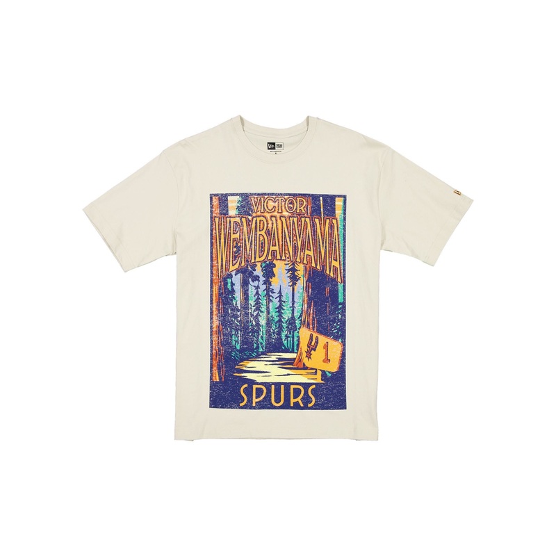 The San Antonio Spurs 2025 All-Star Game Victory Grove Stone T-Shirt features a screen-printed Spurs player name and number at the front.Fabric: 100% Cotton