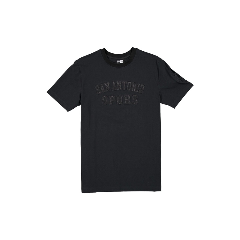 The San Antonio Spurs Black on Black Logo Select T-Shirt features a satin applique with a tonal stitch Spurs wordmark at the chest and an embroidered team logo at the left-wear sleeve.Fabric: 93% Cotton, 7% Spandex