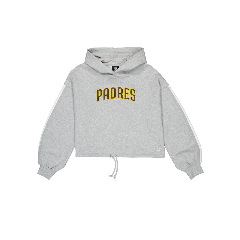 The San Diego Padres Gray Logo Select Women’s Hoodie features an embroidered Padres wordmark at the front panels with a drawstring closure at the hem.