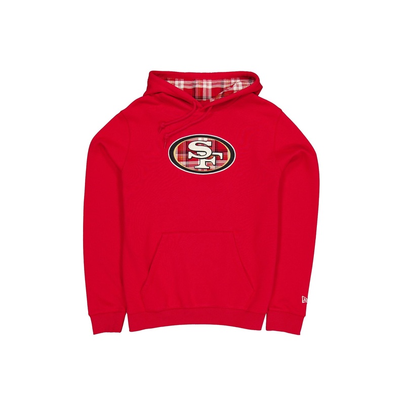 The San Francisco 49ers 3rd Down Plaid Hoodie features a plaid applique 49ers patch at the chest with a kangaroo pocket at the front and a plaid lined hood.Fabric: 80% Cotton, 20% Polyester