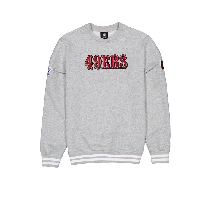 The San Francisco 49ers Gray Logo Select Crewneck features an embroidered 49ers wordmark at the front panels with a matching team logo patch at the left arm and a Super Bowl XXIX patch at the right arm.Fabric: 52% Polyester, 42% Cotton, 6% Spandex