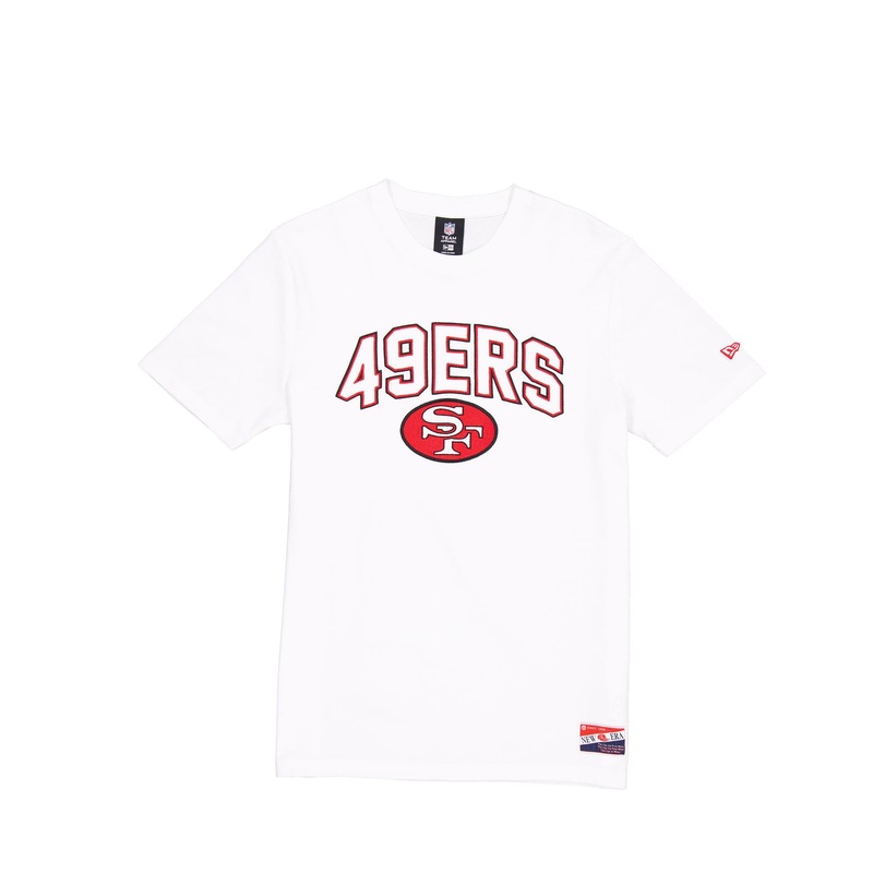 The San Francisco 49ers Throwback White T-Shirt features an embroidered 49ers wordmark above an embroidered team logo at the front.Fabric: 63% Cotton, 37% Polyester