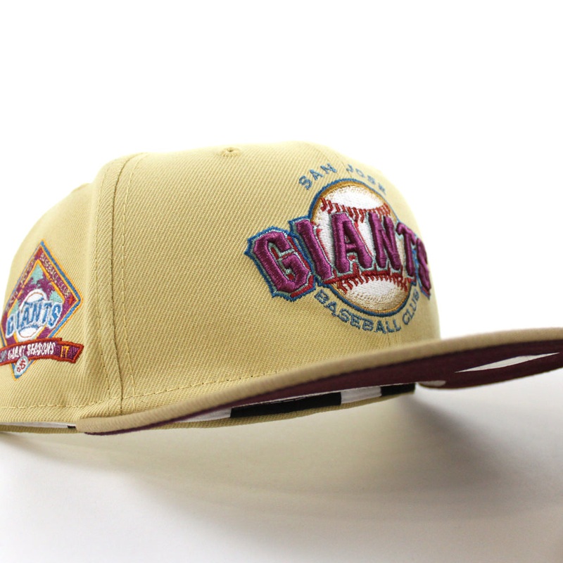 SAN JOSE GIANTS 30th Anniversary New Era Fitted Hat in Vegas Gold, Maroon and Khaki Under Brim.