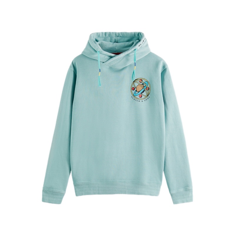 Style # - 169512-0218Effortlessly comfortable, a favourite hoodie always feels good to wear. Featuring a Scotch & Soda logo detail with space-themed artwork, finished with a large pouch pocket and ribbed hem and cuff this style is ready for anytime wear.Re