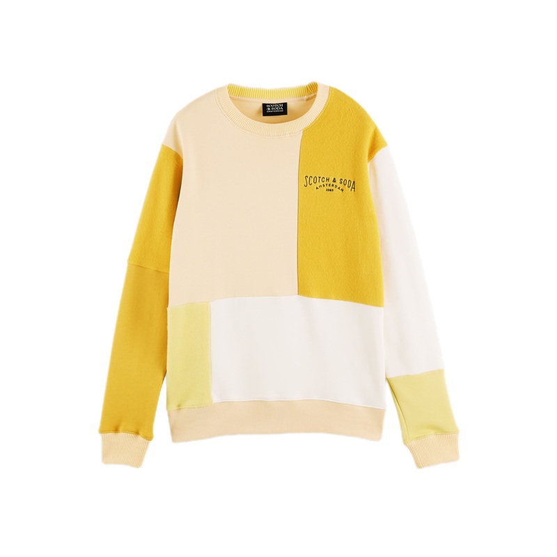 Style # - 169600-0217The crewneck sweatshirt is a comfortable staple in any wardrobe. Our latest variation comes in brushed felpa with color block panelling for an eye-catching reimagination of a loved style. Detailed with an embroidered classic Scotch & S