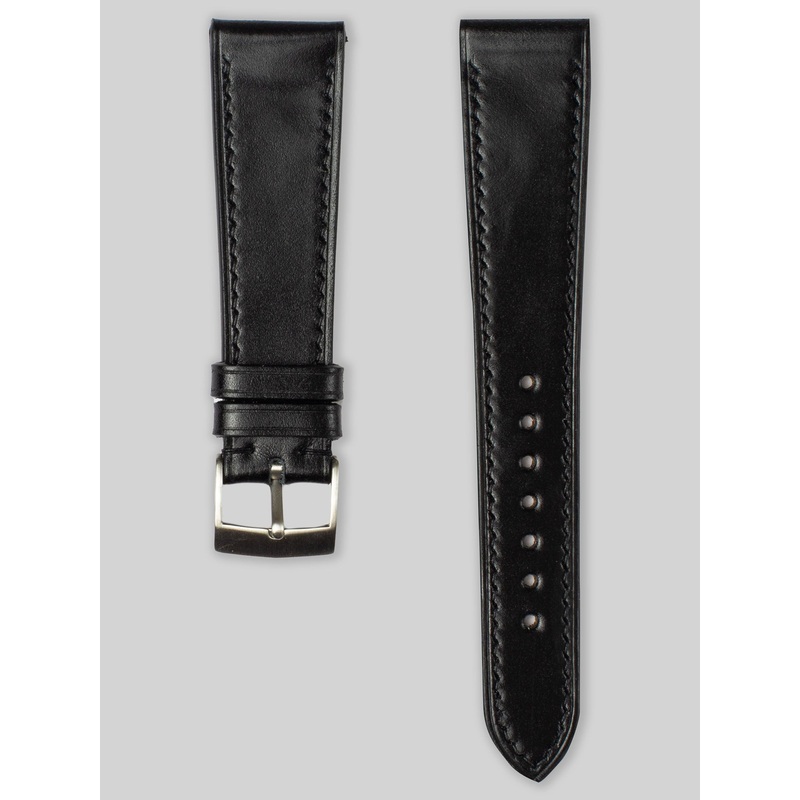 If youve ever spent time researching quality boots or dress shoes, youve no doubt heard of Shell Cordovan. This incredibly rare horsehide is considered to be the absolute cream of the crop in the world of leathers, with its characteristic sheen and remarkable durability being major selling points. Ours is sourced from Japans Shinki Hikaku tannery, which produces a version of this leather that is especially uniform in its color and texture. If youre looking for your last watch strap, this is it. And in this rich, inky black, itll go with literally any case or dial material or color, and is equally at home with a suit or a t-shirt.